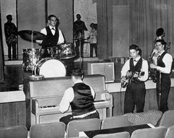 The Chancellors, of Boise Idaho, were a very professional band that performed every Saturday night to a capacity house at the Fiesta Ballroom. We had a wardrobe and choregraphed staging, which most bands in that region and era strived for, in an effort to emulate the regional heroes, Paul Revere and the Raiders, who were the "kings of rock" in the eyes of all us up-and-coming rockers in the Boise, Nampa, Caldwell, Idaho area. The Raiders put on the greatest dance/shows of all time. Because their tour schedule kept them out of town quite a bit, other local bands like the Chancellors, The Chessmen, The Nameless Ones, & Dick Cates could shine in their absence and cultivate a strong local following. The Fiesta Ballroom became legendary as the only place for high school kids to be on Saturday night to mix with their friends. Because two rival high schools would show up for the dance, it sometimes became Boise's version of the "West Side Story" with the "Jets" and the "Sharks" rumbling on the dance floor. Since the Fiesta Ballroom was on the second floor of a factory building, one night a bad fight broke out and a kid got pushed out the window and another pushed down the long, steep staircase. I'm still amazed that no one got killed that night. It became obvious that we needed more security and bouncers, which we quickly hired for the following week. My favorite spot was the fire escape landing where I would spend my breaks making out with my steady girl friend, Kitty. As a very famous song said many years later: "...I'm a lover, not a fighter." Since I had to stay on stage and play all night, my break-time with my girl had to be quality time, unless of course, I could occasionally sneak off stage during a ballad and catch a slow dance with Kitty. I played rhythm guitar with the Chancellors, and did some of the lead vocals, when our lead vocalist and bongo player, Rich Crowley needed a break. Some of my lead vocals were "Hello Josephine" by Fats Domino, and "Return to Sender" by Elvis Presley. I also played lead guitar on "Sleep Walk" by Santa and Johnny. We were essentially a rock and roll show band, that did lots of great instrumentals like "All Night" by the Marquees. We had one sax man, Eddy Hueman, but our piano player, Dale Rich, also doubled on horn, so we were able to do some great horn songs. In fact, when the Chancellors began their recording career, "Black Out" was a horn song instrumental, while the 'A' side, "Diamond In The Sky," was a vocal. Terry Call was the lead guitar, Tom Lowe was on bass, and Russ Bice was on drums. Russ and I had been good friends for many years. |